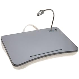 Work from home, plane, train, or bus with this portable Laptop Desk with Lamp! Plastic desktop, polyester base. The soft, flush base will comfortably conform to the contours of your legs. This lap desk is great for working on forms, homework, paying bills and more! Large Laptop Desk surface, with built-in light. "Write on it or read on it or even dine on it!" A great, timesaving item -- at a great price. Assembly level/degree of difficulty: No Assembly Required.